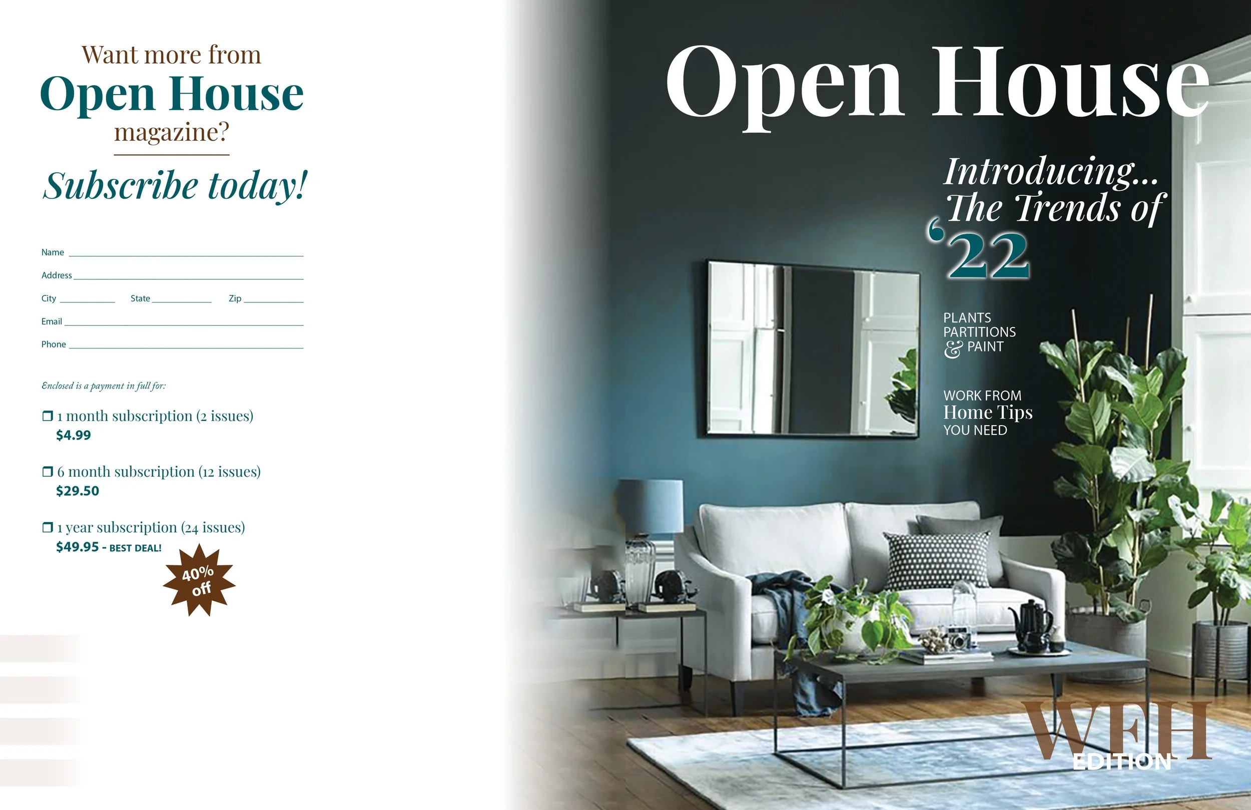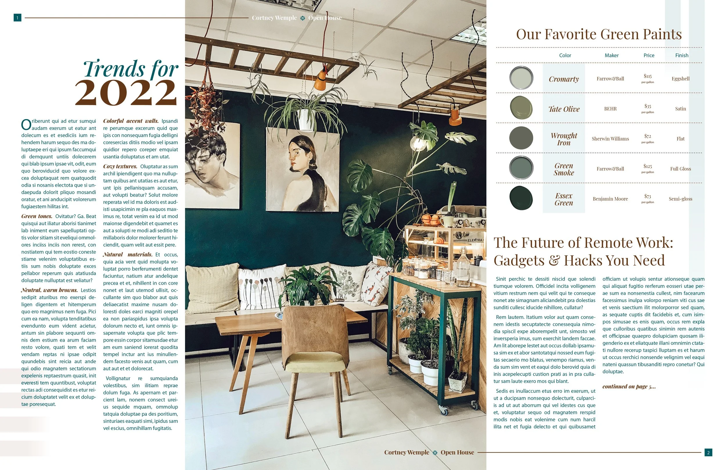 Create a magazine cover, three interior two-page spreads, and a sign-up for an imaginary magazine
