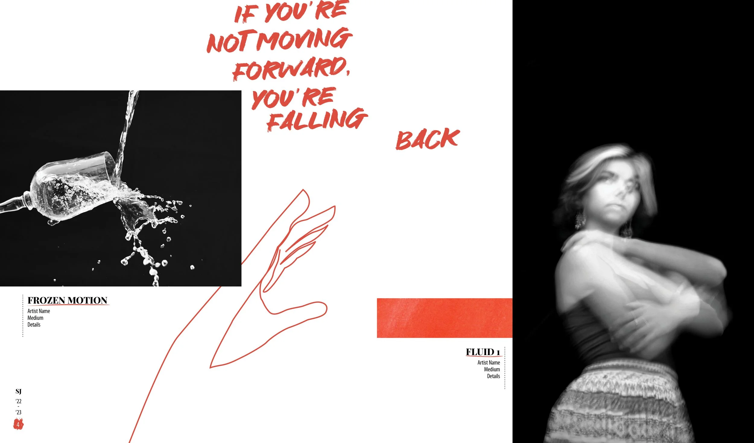Layout: Very simplistic layouts with lots of white space are what ultimately let the art and literary pieces shine. Not overwhelming the pieces with tons of designs or cramped layouts gives the work breathing room as you would see in an art exhibition which is what the Sierra Press aims for every year, to showcase the community’s work in the best light.